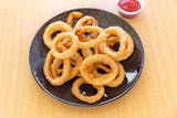 Crispy onion slices deep-fried until golden-brown.